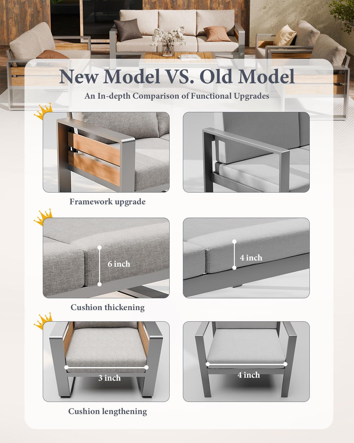 Specification: ZANDOR Aluminum Outdoor Patio Furniture Set, 5-Piece Metal Modern Outside Sectional Conversation Lawn Furniture with Coffee Table & Washable Thick Cushions,Seating Sofa for…