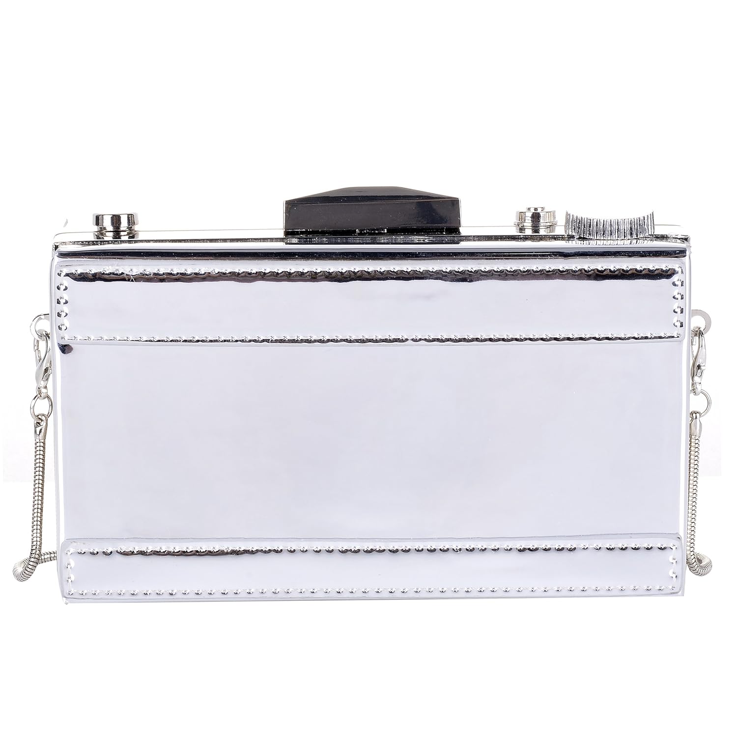This purse is very sturdy. It’s actually great, my only qualm would be the glitter. They are gold and silver stars but they weren’t distributed evenly so its a bit much. The product photos show way less glitter. It doesn’t rub off though so that’s a plus. My phone doesn’t fit in it, (Galaxy A50) but a smaller one would. I do love it! This is a great clutch for the price. I’m a photographer and it suits my personality! Looks just like a camera. I’m taking it to a wedding.