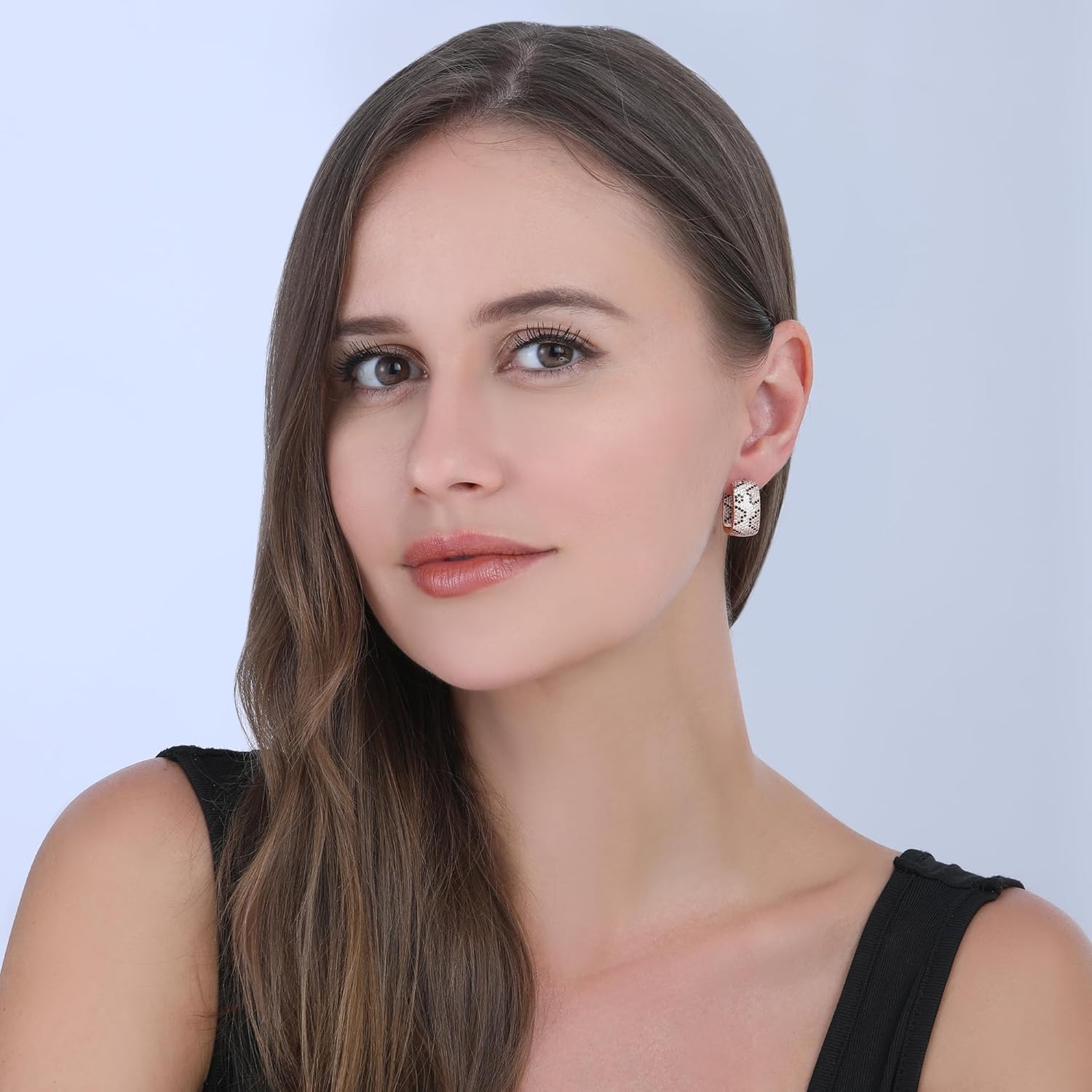 7 reviews for Rose Gold Hoop Earrings for Women, 925 Silver-Plated Thickened Hypoallergenic Earrings, CZ Black Gemstone-Inlaid Earrings – Women’s Fashion Jewelry