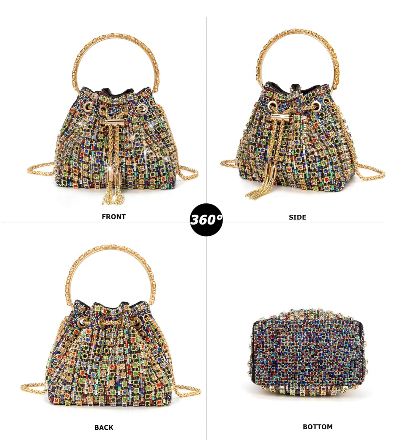 FEATURES: Our luxury glitter evening clutch is chic and unique with metal loop handles, detachable shoulder strap and full of dazzling rhinestones, All-round sparkling appearance, very fashionable, make you stand out from the crowd. Tassel & Drawstring Design-protect your bag with a tassel hook & drawstring and tensioning the chain securely. This Evening Clutch Bags will make you a dazzling one on every occasion.