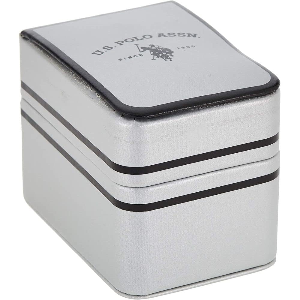 Sophisticated white glossy dial with bold U.S. Polo Assn. logo and clear hour markers for a refined look