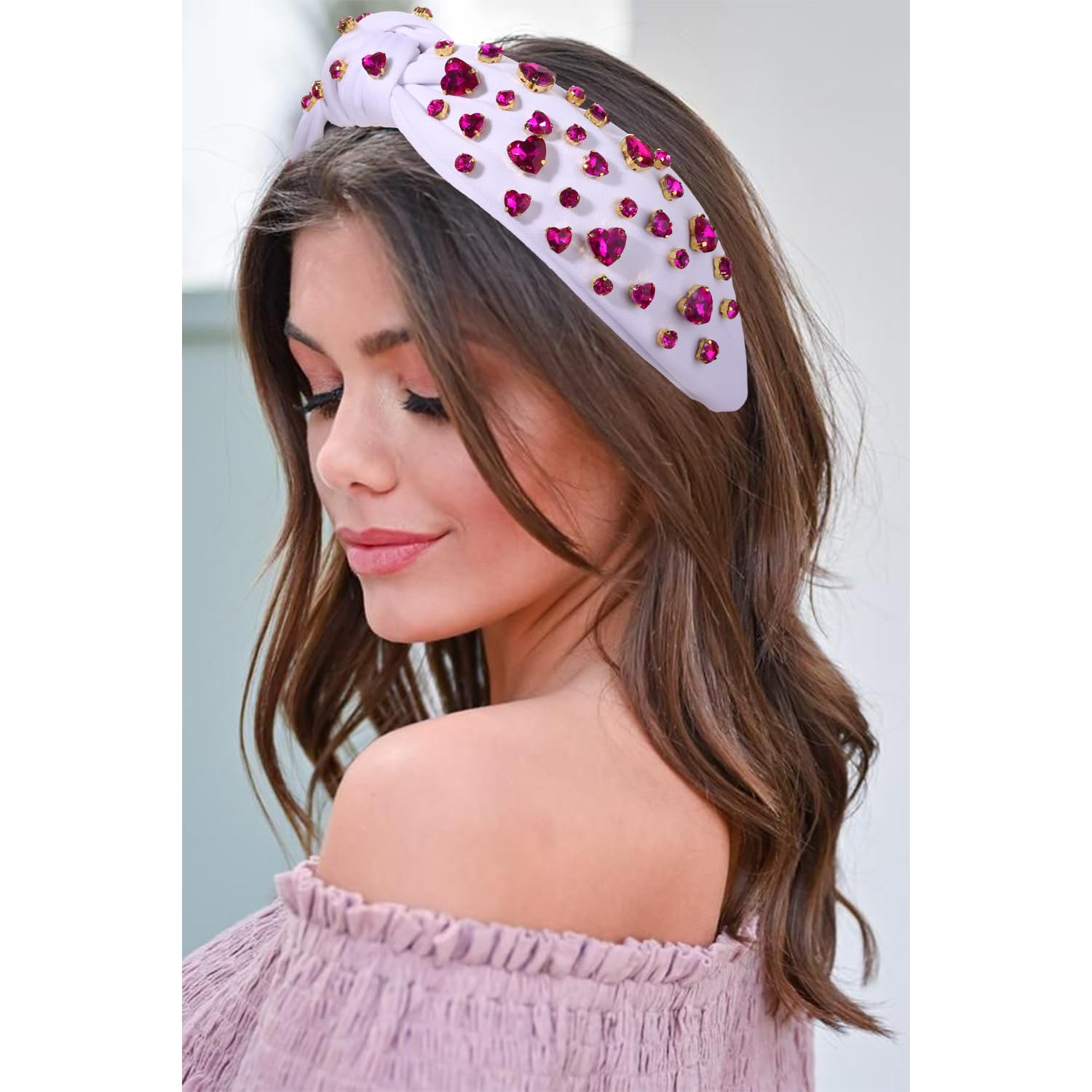 Valentine’s Day Heart Headbands for Women Valentine’s Day Accessories Jeweled Beaded Heart Knotted Headband Pink Red Rhinestone Wide Top Knot Headband Valentine Party Favors…