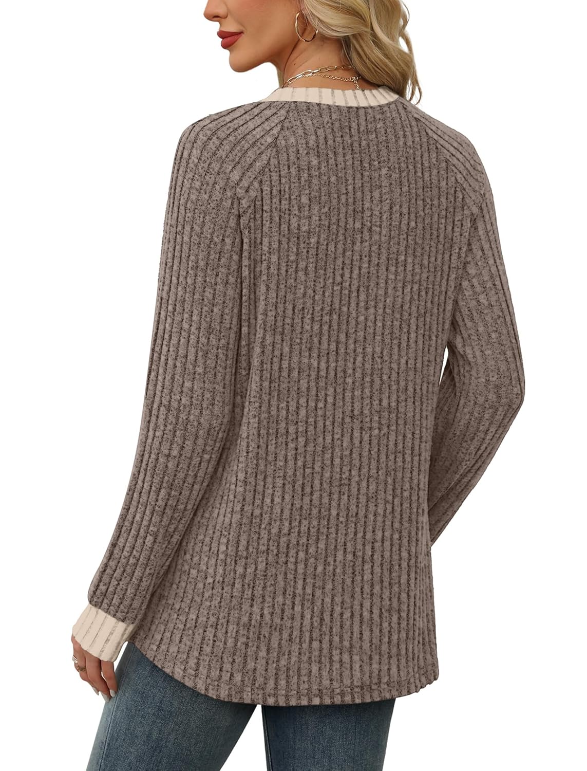 8 reviews for 35% Off Limited Time Deal – WIHOLL Long Sleeve Shirts for Women Lightweight Sweaters Fall Outfits 2025 Color Block Winter Clothing Dressy Casual Soft